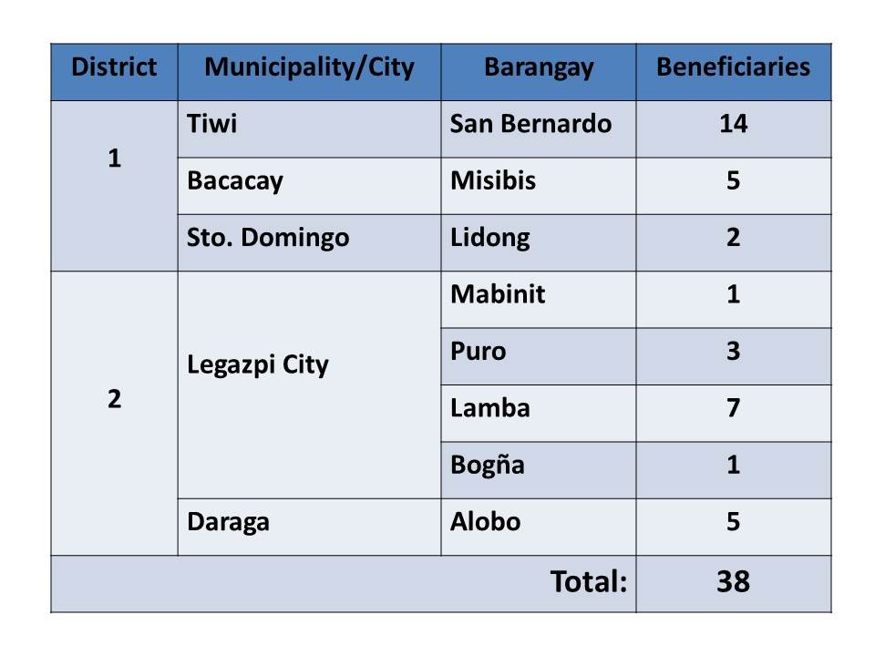 The project has a total of thirty-eight (38) beneficiaries, who were from eight ( 8 ) different barangays of the five (5) Towns in Albay. Contract Signing was conducted with the beneficiaries on July 13 - 15, 2022, as witnessed by one of their Barangay Council, while discussing the counterparts and the target schedule of activities.