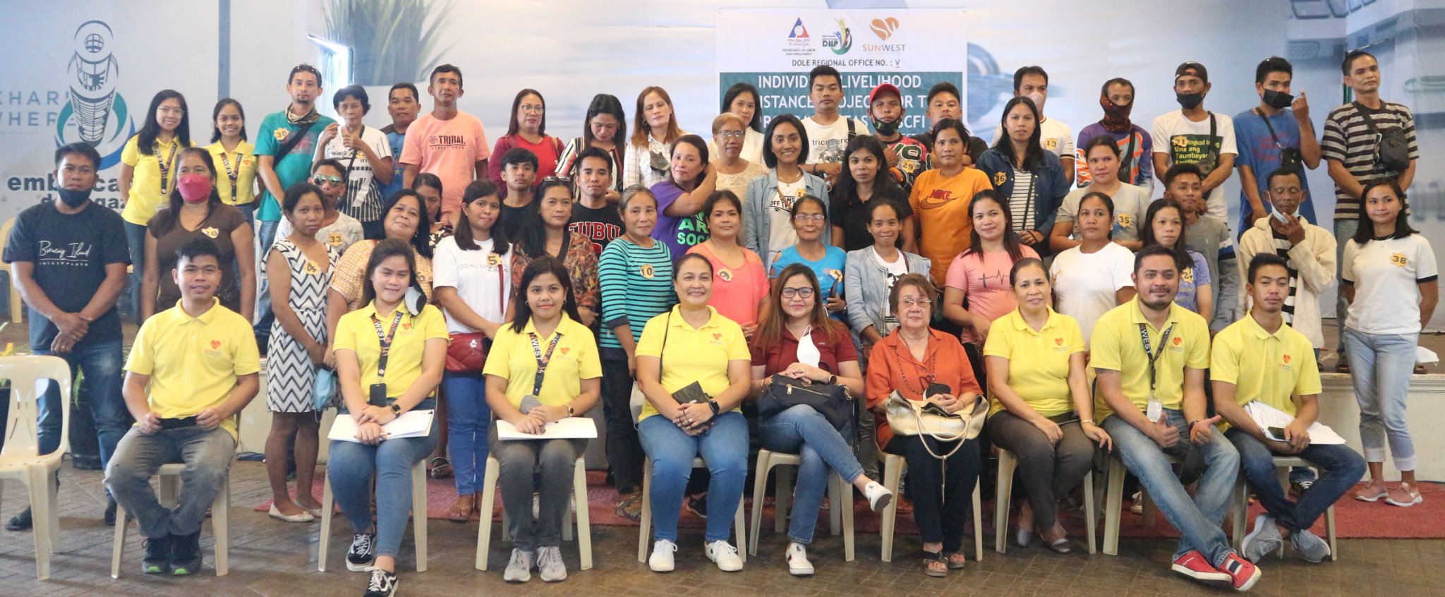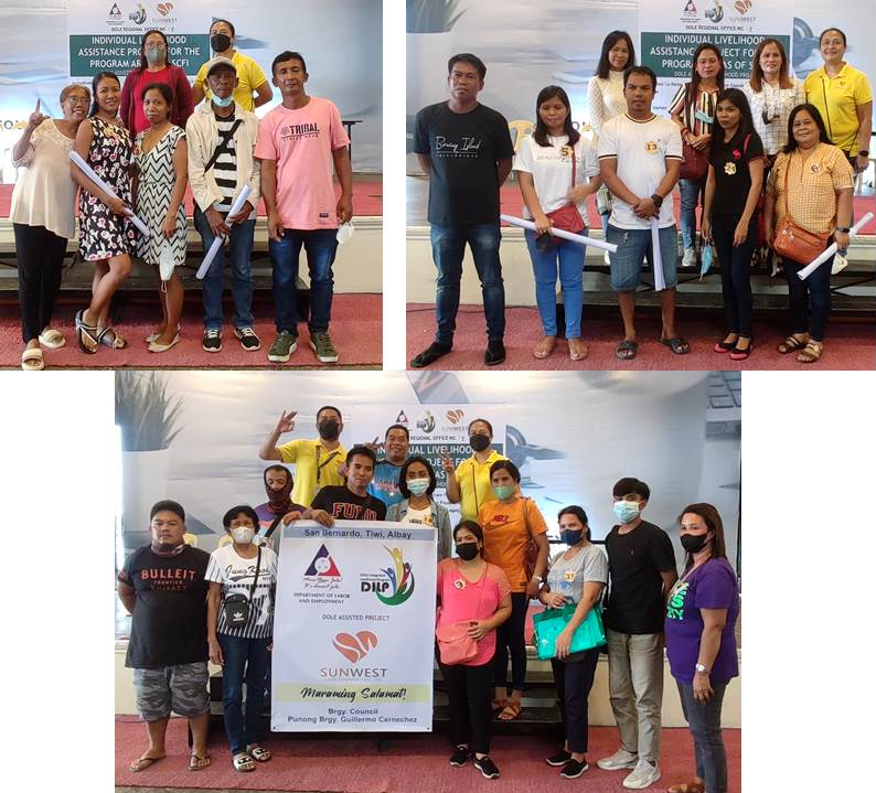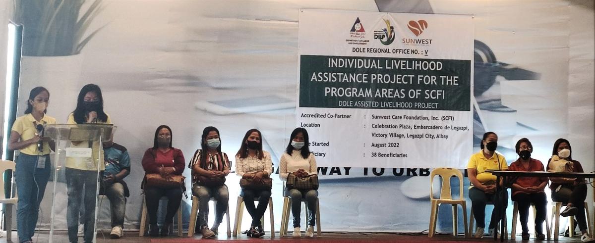 A Turn-over Ceremony was conducted by Sunwest Care Foundation, Inc. last August 19, 2022 at the Celebration Plaza of Embarcadero de Legazpi, to award the livelihood materials and equipment to the thirty-eight (38) beneficiaries of the Individual Livelihood Assistance Project under DILP (DOLE Integrated Livelihood Program), in partnership with the Department of Labor and Employment Region 5 (DOLE V). The livelihood materials and equipment awarded were according to the proposed items of the project beneficiaries for enhancement of their existing livelihood and skills.