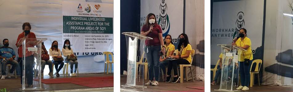 SCFI Board of Trustees, Ms. Amy Duran giving her Opening Remarks, and DOLE Albay Provincial Office LEO, Ms. Olga Ludovice gave her short message and reminders for beneficiaries.